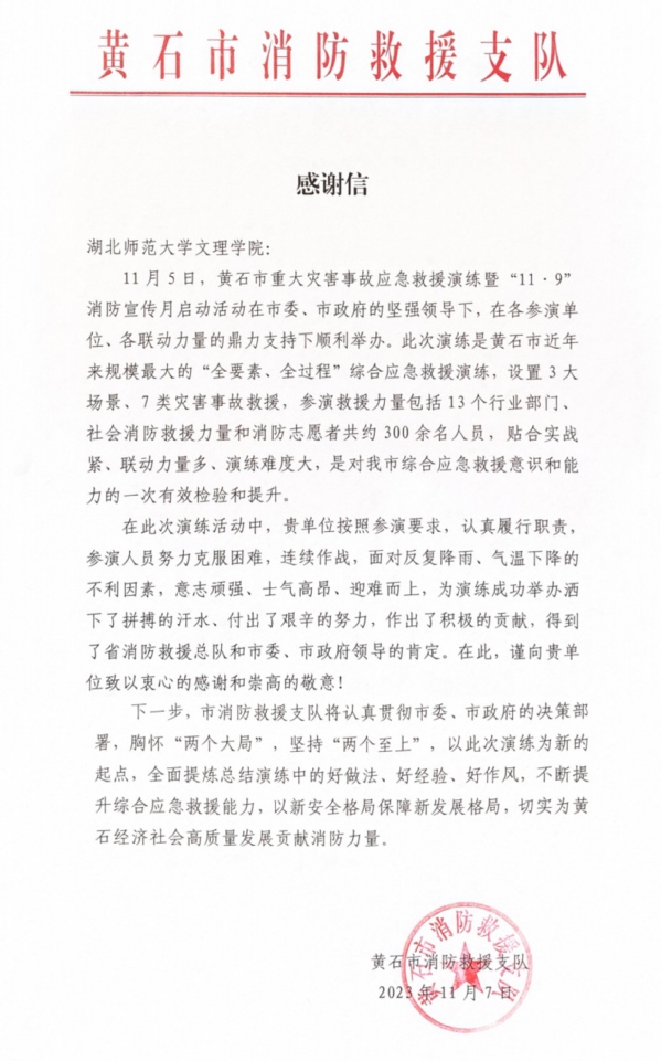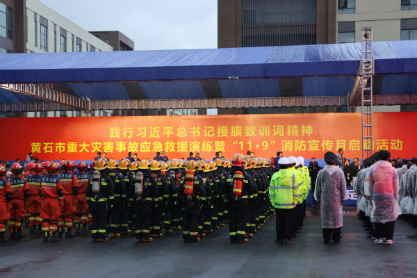 本网讯(文 涂亦乐 图 凌玉珍 杨玉丽)11月5日,黄石市重大灾害事故应急救援演练暨“11.9”消防宣传月启动活动在黄石市智能显示产业园举行。杏彩体育_杏彩(中国)后勤保卫部联合迪科金融服务产业学院组织100名大学生消防志愿者参加了本次活动。