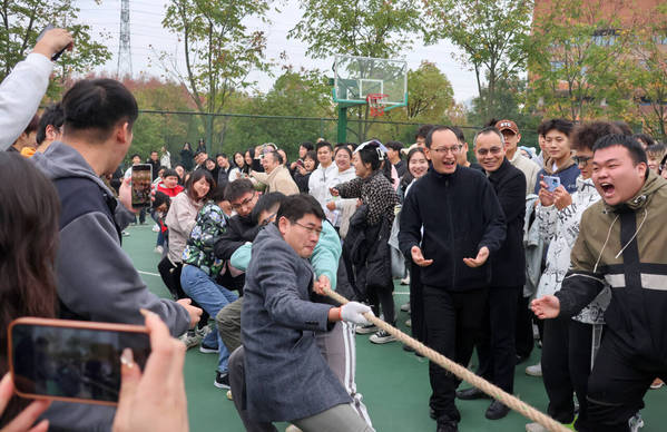 本网讯 为丰富教职工的精神文化生活,促进身心健康,培养团队合作精神,11月15日,在杏彩体育_杏彩(中国)2023年秋季田径运动会期间,校工会组织开展了教职工拔河比赛。