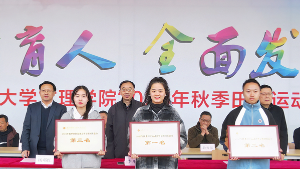 闭幕式上,总裁判长阮璨宣布了运动会比赛情况。其中理工学部、教育与艺术学部、腾讯云大数据产业学院以及翔宇航空产业学院荣获“体育道德风尚奖”;迪科金融产业学院、经管学部以及人文学部荣获“优秀组织奖”;迪科金融产业学院、翔宇航空产业学院以及经管学部分别斩获女子团体第一名、第二名、第三名;东风悦享汽车产业学院、翔宇航空产业学院以及腾讯云大数据产业学院分别斩获男子团体第一名、第二名、第三名;翔宇航空产业学院、迪科金融产业学院、东风悦享汽车产业学院分别获得了团体总分的第一名、第二名、第三名。随后出席闭幕式的校领导为获奖集体颁奖。