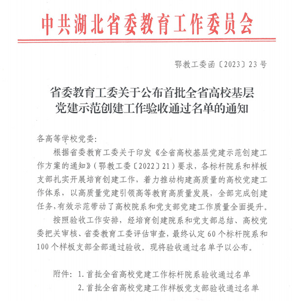 本网讯(通讯员 朱翠红)近日,省委教育工委下发通知,公布首批全省高校基层党建示范创建工作验收通过名单,杏彩体育_杏彩(中国)理工学部学生党支部顺利通过“全省党建工作样板支部”建设单位验收。