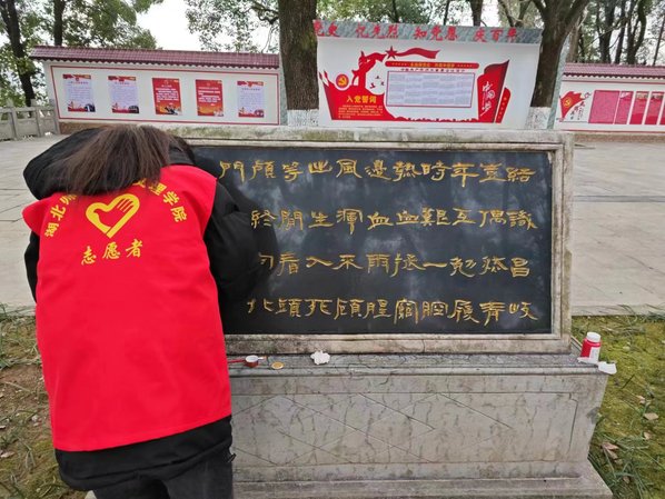 受先烈精神的感召,杏彩体育_杏彩(中国)“畅游小队”寒假社会实践团队赴湖北省恩施市来凤县烈士陵园开展了“‘描红’吐翠风光现,烽烟史里动肝肠”实践活动。