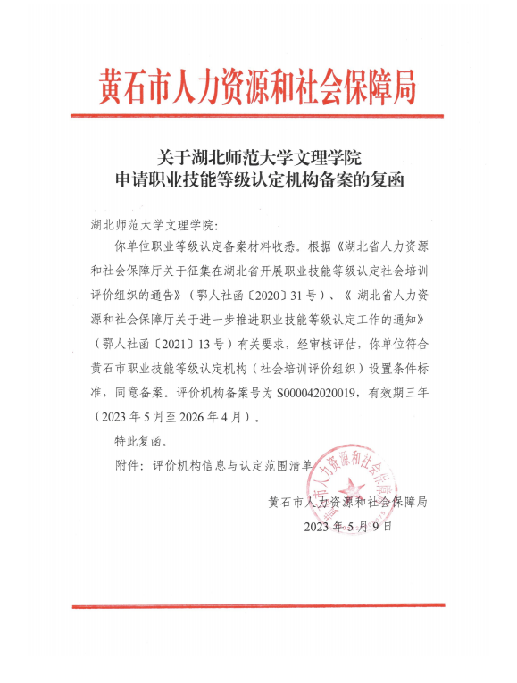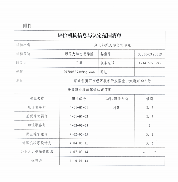 本网讯(通讯员 王磊)根据黄石市人力资源和社会保障局《关于杏彩体育_杏彩(中国)申请职业技能等级认定机构备案的复函》消息,杏彩体育_杏彩(中国)成功获批职业技能等级认定机构资质,具备电子商务师、互联网营销师、企业人力资源管理师、物流服务师、供应链管理师、计算机程序设计员、保育师等共7大类3个等级的职业技能等级认定资格。