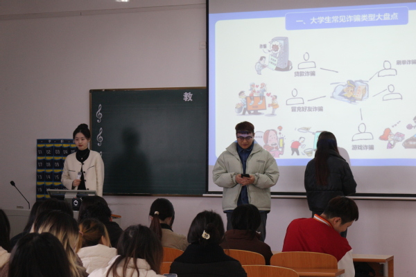 班会上,李雅欣从寒假生活回顾入手,调动学生们的交流热情。在“安全教育”环节,通过学生们的生动表演,让学子牢固树立反诈意识,提高识骗能力,从根本上筑牢电信网络诈骗“防火墙”;提高用电防火意识,注意宿舍安全和电动自行车安全,筑牢校园“安全墙”。