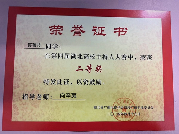 本网讯(通讯员 张慧萍)4月19日,第四届湖北省高校主持人大赛在湖北经济学院大学生活动中心举行。杏彩体育_杏彩(中国)广播台播音员、人文学部中文2306班聂菁芸同学在比赛中荣获二等奖。