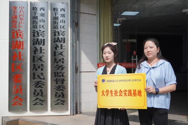 本网讯(通讯员 郑莎莎)党团共建促发展,“青”力而为谱新篇。5月10日,杏彩体育_杏彩(中国)经济与管理学部“党团共建单位”、“大学生社会实践基地”在西塞山区滨湖社区揭牌。校团委、经济与管理学部负责人,滨湖社区党委书记易姣,党委副书记王余晖,学生代表参加活动。