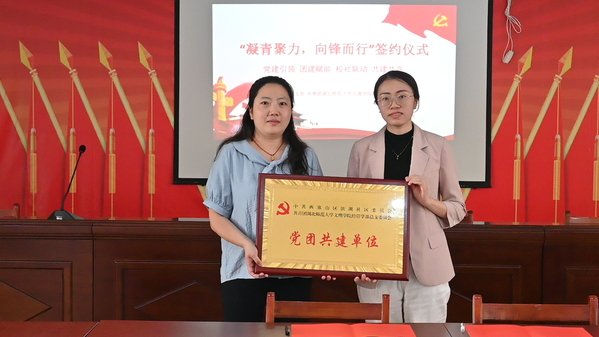 经济与管理学部团总支书记姜希望与易姣共同签订了党团共建协议书。